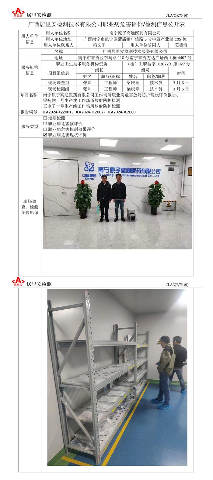 职业病危害评价/检测信息公开表(XZZ001、JCZ002、JCZ003南宁原子高通医药有限公司)
