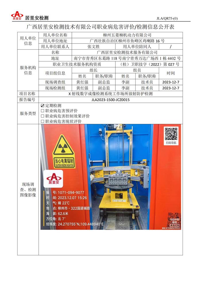职业病危害评价/检测信息公开表(JCZ0015 柳州五菱柳机动力有限公司)