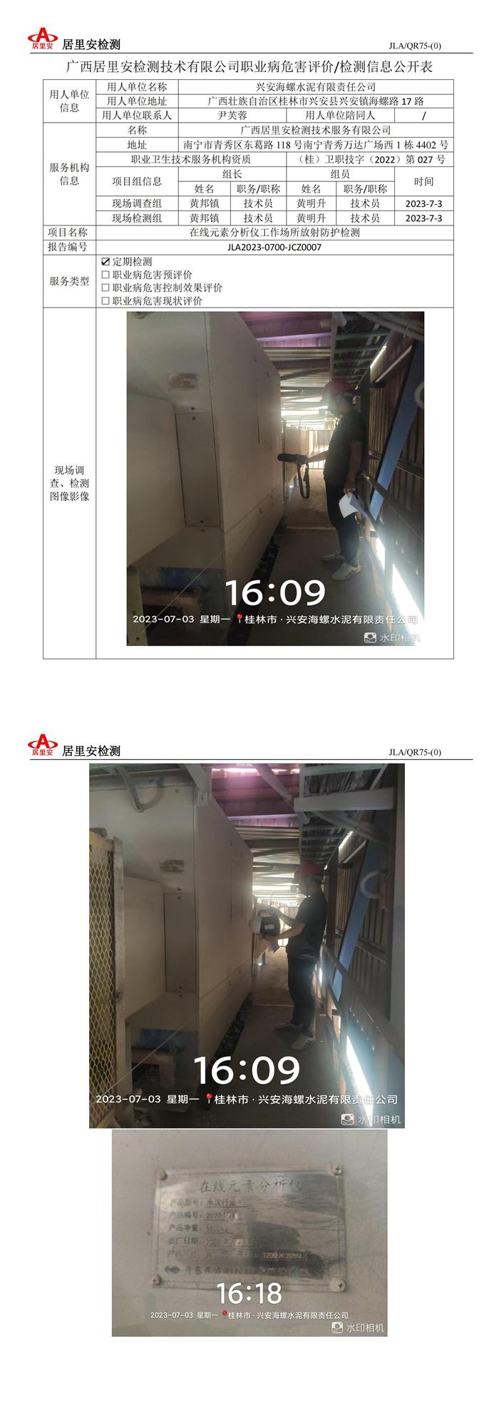 职业病危害评价/检测信息公开表(JCZ0007 兴安海螺水泥有限责任公司)