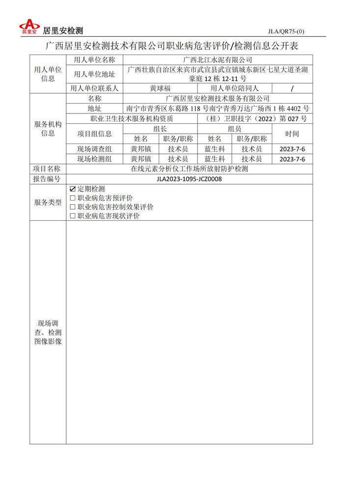 职业病危害评价/检测信息公开表(JCZ0008 广西北江水泥有限公司)