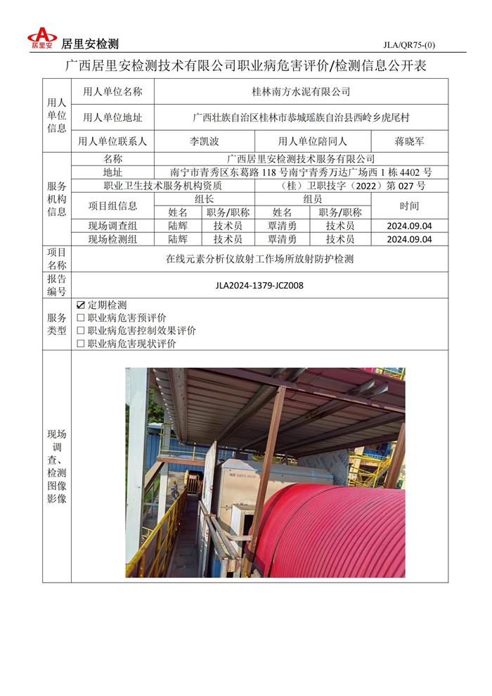 职业病危害评价/检测信息公开表(JLA2024-1379-JCZ008 桂林南方水泥有限公司)