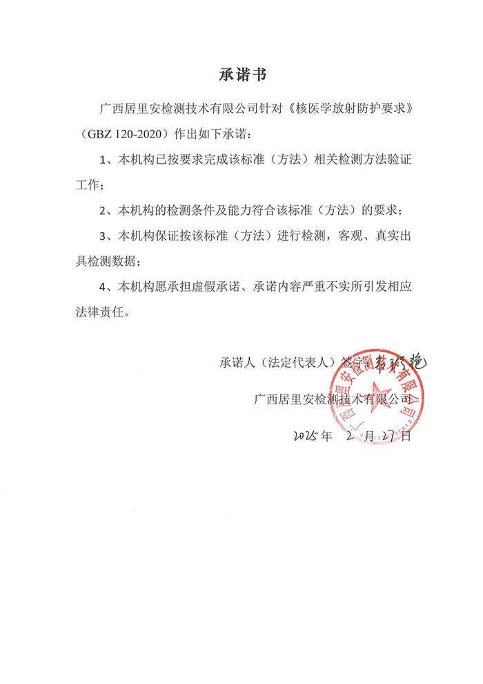 承诺书《核医学放射防护要求》(GBZ120-2020)