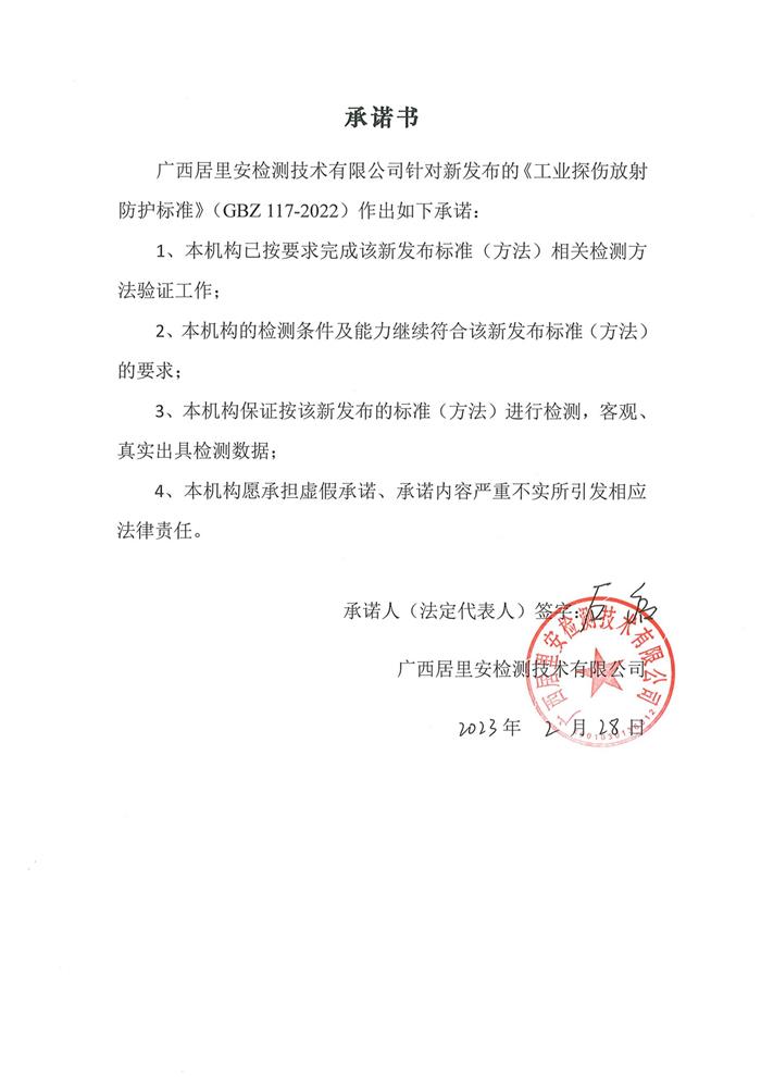 承诺书《工业探伤放射防护标准》(GBZ117-2022)