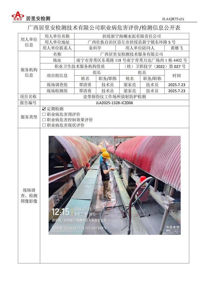 职业病危害评价/检测信息公开表(JLA2025-1328-JCZ006扶绥新宁海螺水泥有限责任公司)